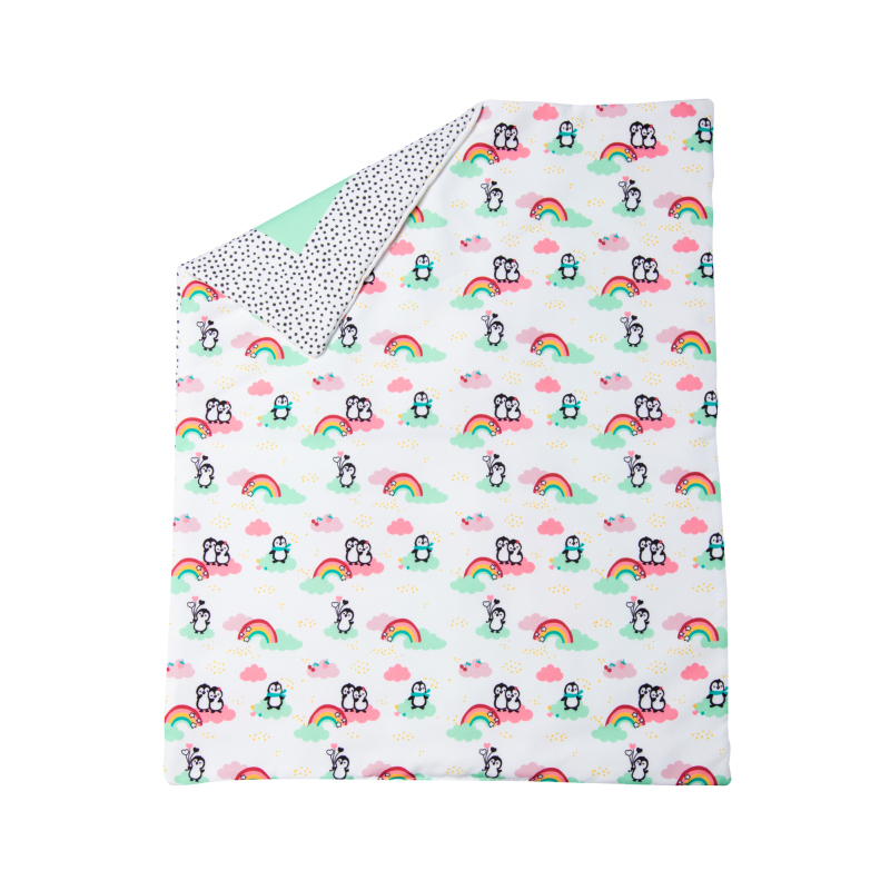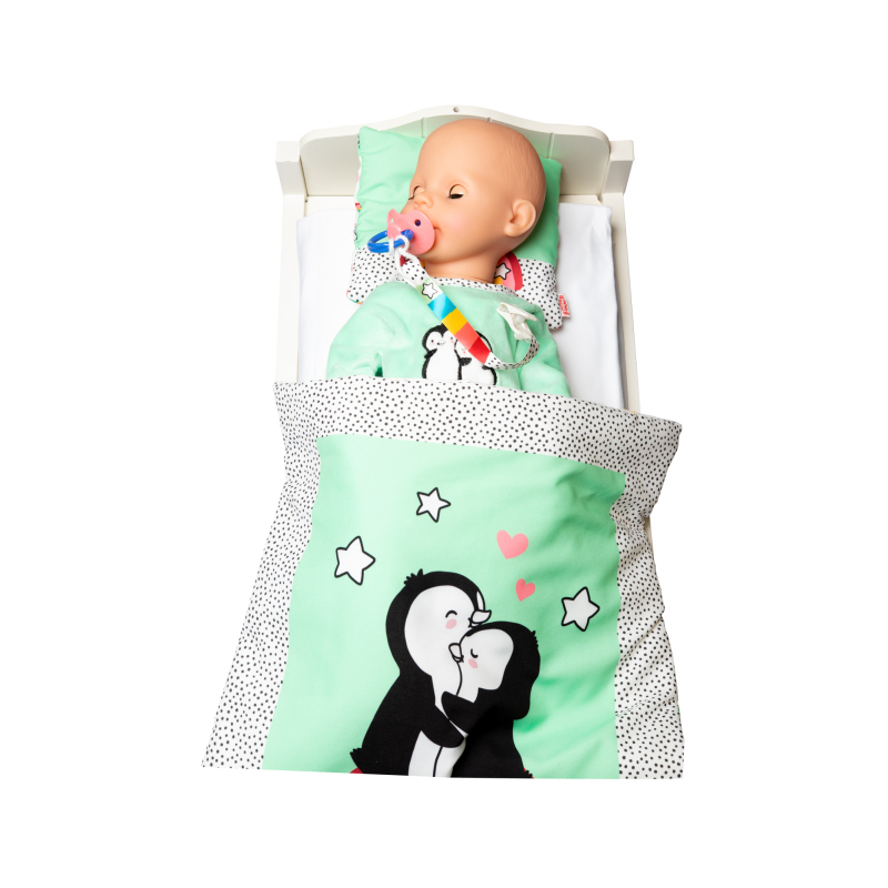 Puppen-Bettdecke "Pinguin Pünktchen" (44 x 34 cm) mit Kissen (16 x 16 cm)
