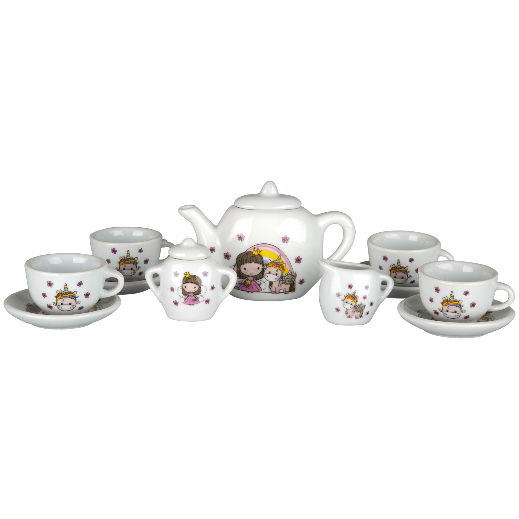 Das Teeservice aus Porzellan wurde mit Liebe zum Detail gestaltet und verzaubert Ihre Kinder mit den niedlichen Motiven der Little Woodies Freunde. Mit dem Teeservice können die Kinder ihre Fantasie zum Leben erwecken und zu Gastgebern ihrer eigenen zauberhaften Teepartys werden. Sie können ihre Familie, Freunde und sogar ihre Lieblingspuppen und Teddybären zu einem unvergesslichen Teetreffen einladen. Diese Spielmomente fördern die soziale Interaktion, die Vorstellungskraft und das Selbstbewusstsein.Das Porzellan-Teeservice mit den Little Woodies Motiven ist auch ein wundervolles Geschenk für Kinder, das Spaß und kreative Spielmöglichkeiten bietet. Inhalt: 1 Teekanne mit Deckel, Zuckerdose und Sahnekännchen und 4 Teetassen mit Tellern.