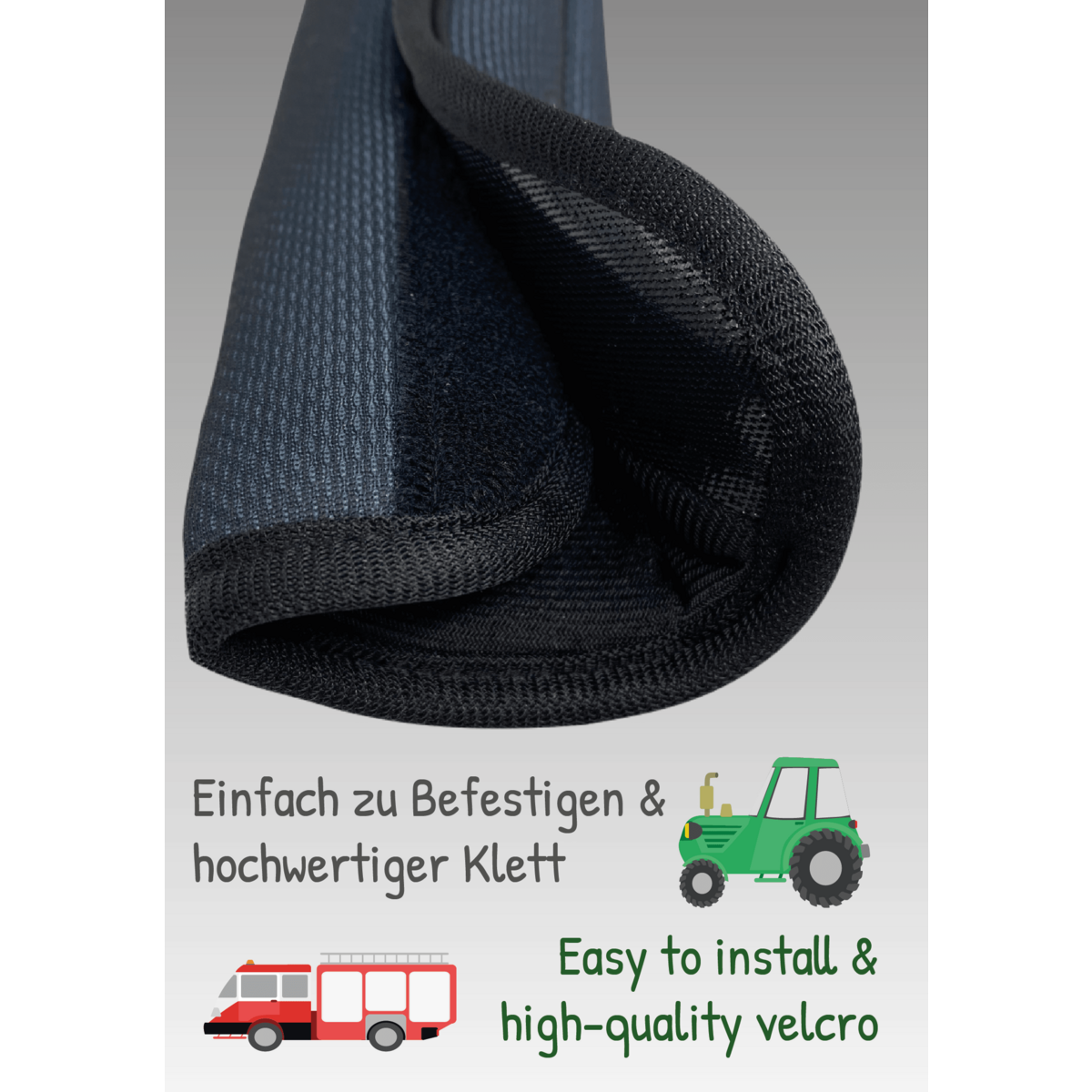 Der Gurtschutz ist aus einem robusten Material mit einer Schaumstoff-Füllung gefertigt, der sich perfekt an die Körperform des Kindes anpasst.