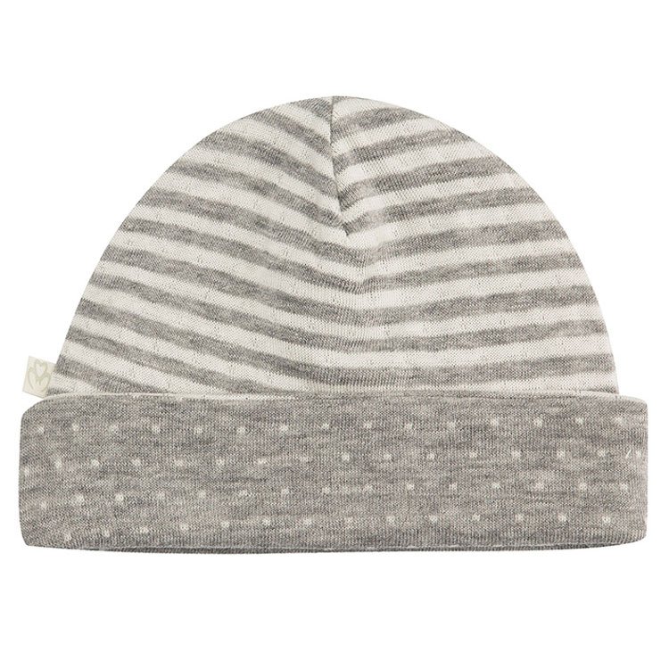Doppelseitiges Interlock-Gewebe aus 100 % Bio-Baumwolle, dadurch kann die Mütze wendbar verwendet werden. Das breite Bündchen gibt der Mütze einen guten Halt und rundet das kuschelige Tragegefühl ab.