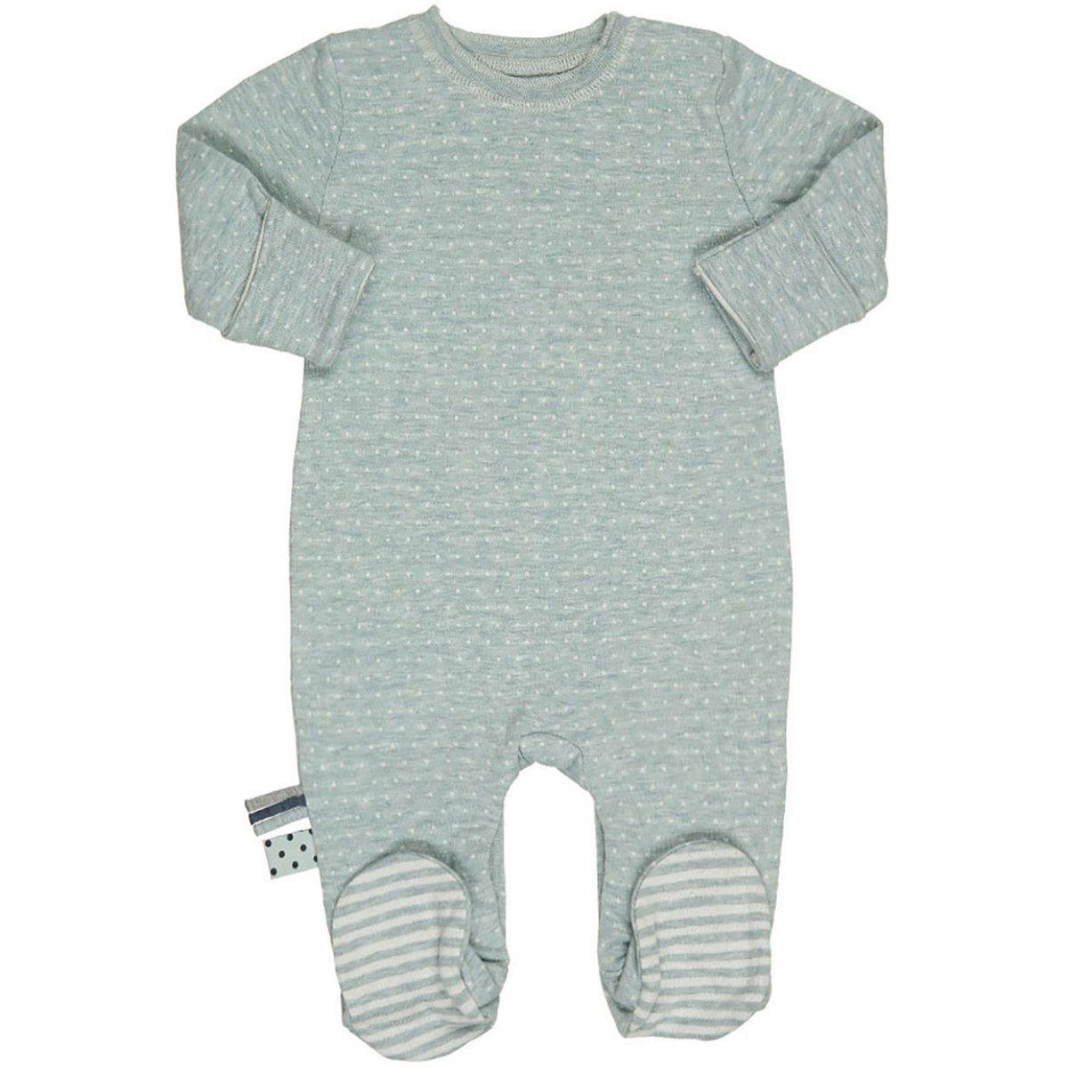 Die Ärmelenden können umgeschlagen werden, um Fäustlinge zu bilden. Der gepunktete Schlafanzug in aqua melange von OrganicEra überzeugt durch sein hochwertig verarbeitetes Material aus Bio-Baumwolle, das sich angenehm auf der Haut anfühlt und nachts angenehm zu tragen ist. Auch die hohe Elastizität trägt zu einem ruhigen Schlaf bei, denn das Kind kann sich im Einteiler frei bewegen – auch in unruhigen Nächten. In der kühleren Jahreszeit lassen sich die Ärmelenden zu Fäustlingen umschlagen.