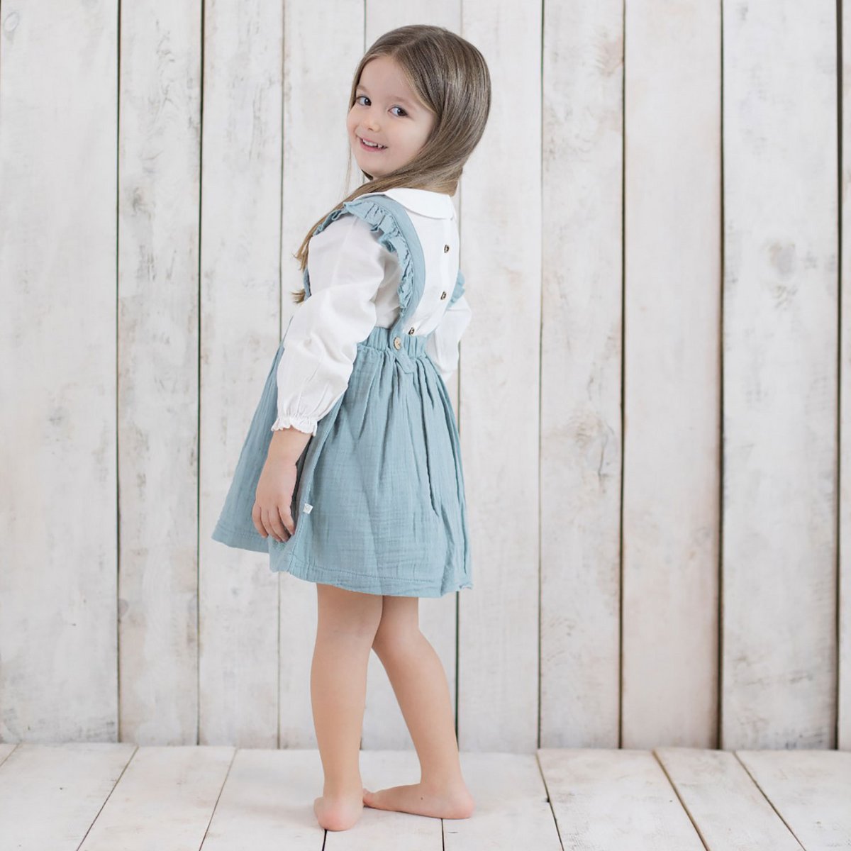 Produktinformationen "Bio -Bio -Musselin -Babykleid mit Rüschen, Aqua Größe: 6-12M"
