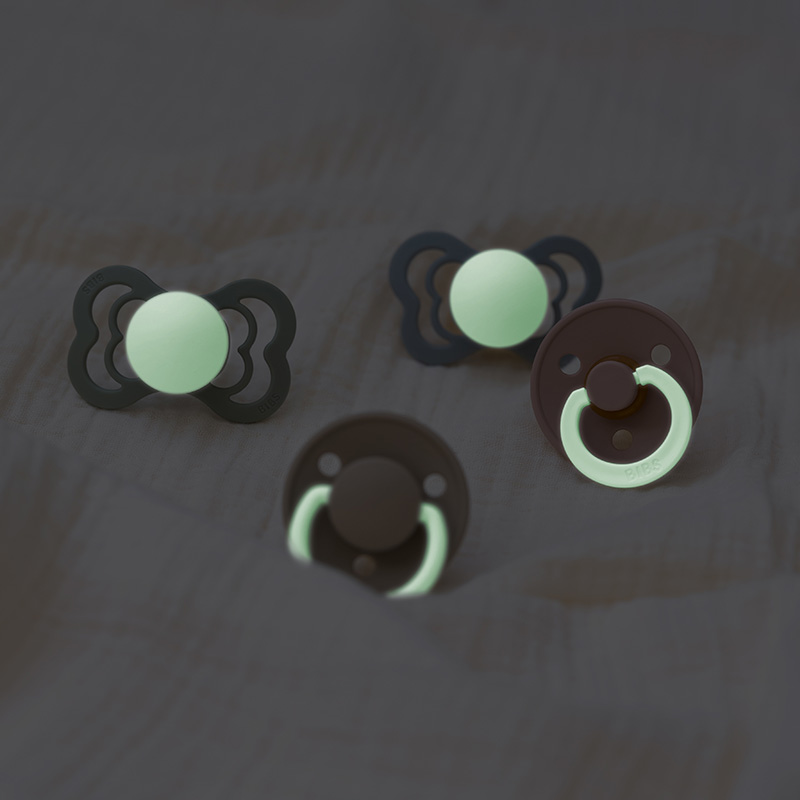 Die GLOW Kollektion umfasst Schnuller mit praktischer Leuchtfunktion, die es den Eltern erleichtert, den Schnuller im Dunkeln zu finden. Das bedeutet weniger Frust für Eltern und ein schnelleres Beruhigen des Kindes.